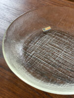 Těžká skleněná mísa s plastickým šrafováním z období Československa.