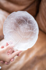 Skleněná miska z lisovaného skla se vzorem listu. Pravděpodobně vycházející ze souboru Příroda navrženého Ivo Rozsypalem v 70. letech.