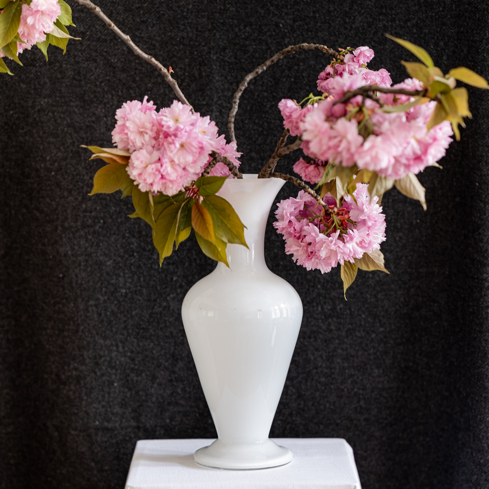 Váza z opálového sla ve tvaru antické amfory je velmi elgantní a hodí se jak do moderního, tak vintage interiéru. Vhodná nejen na vysoké květiny, ale i na větve.