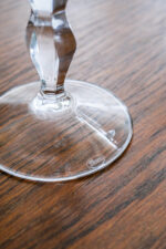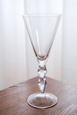Sada sklenic pro pár od značky Moser. Pro dámu na šampaňské z kolekce Paula, která sice již dávno oslavila 100 let od svého vzniku, ale dodnes zdobí slavnostní tabule. Mezi příznivce této nápojové soupravy patří například vévodkyně Camilla, manželka krále Charlese III. Pro pána skelnice na víno z kolekce Ophelia ve velmi podobném provedení.