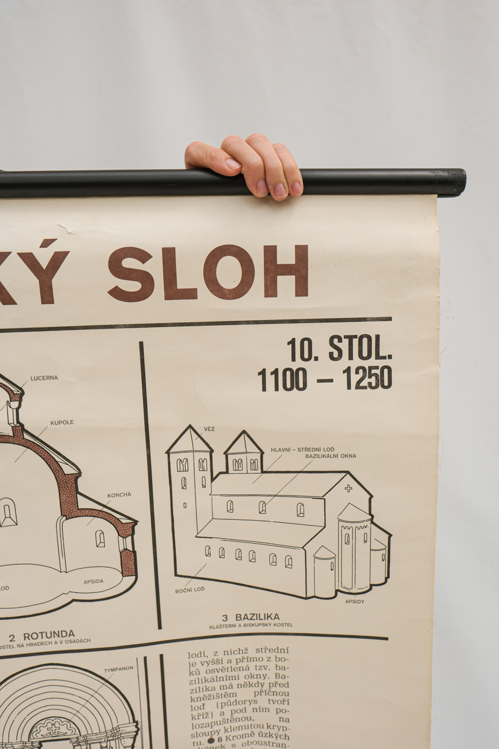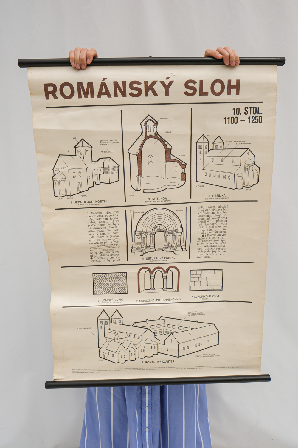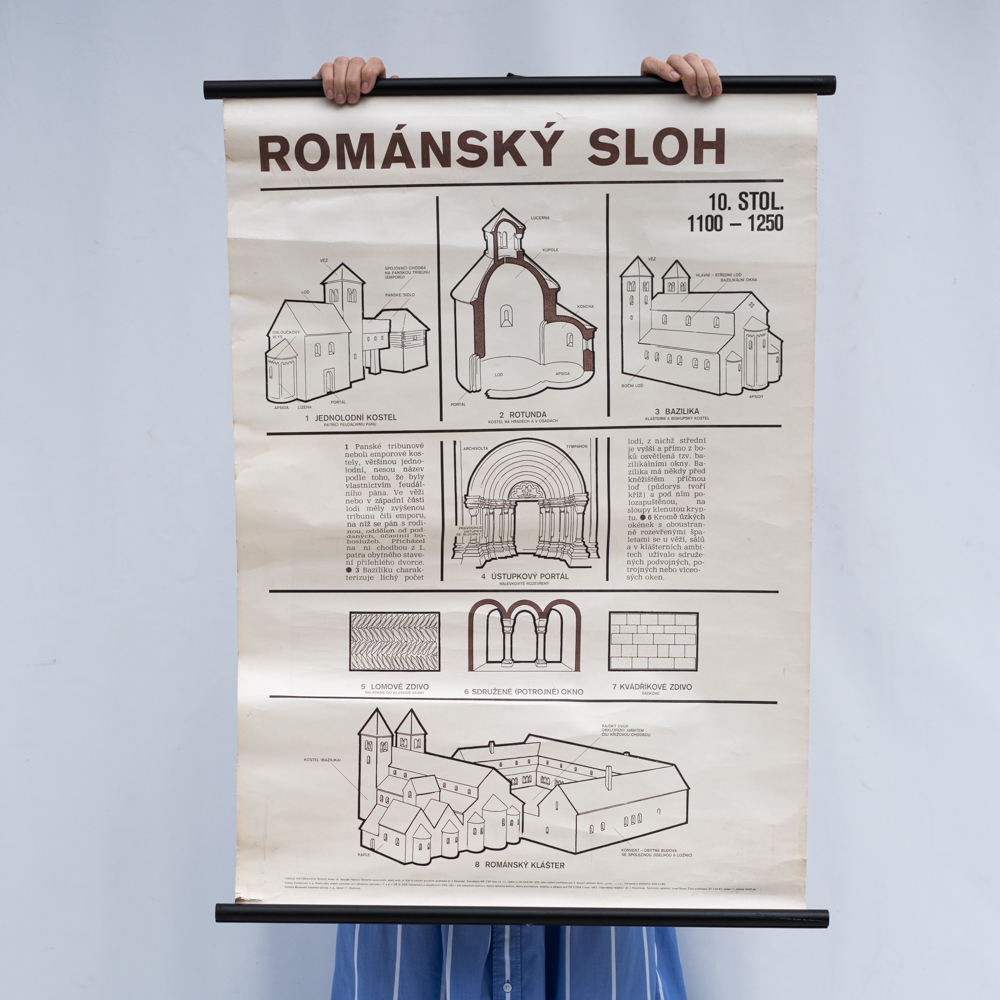 Školní plakát – románský sloh. Ze zadní strany plakátu naleznete i podrobný popis tohoto slohu.