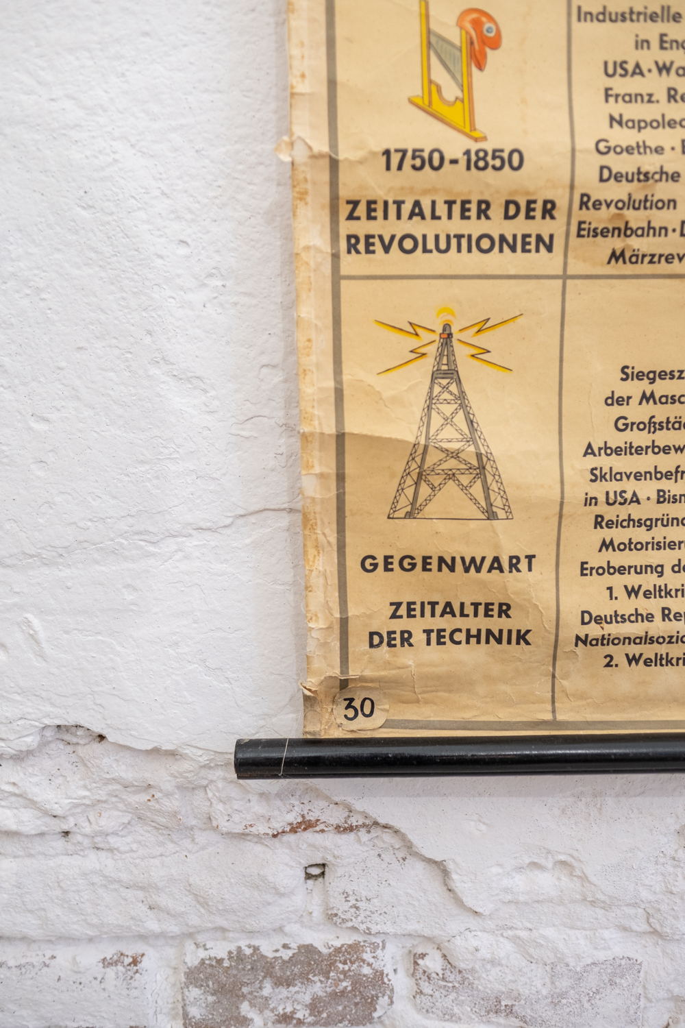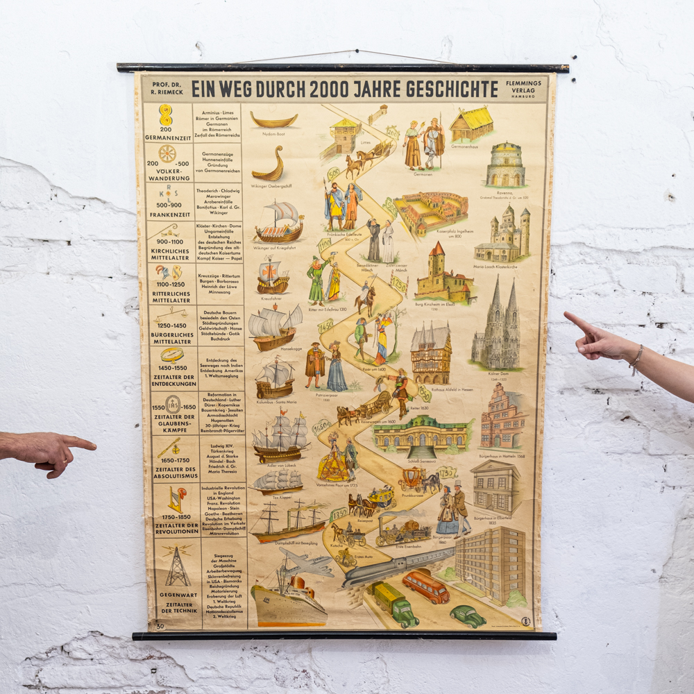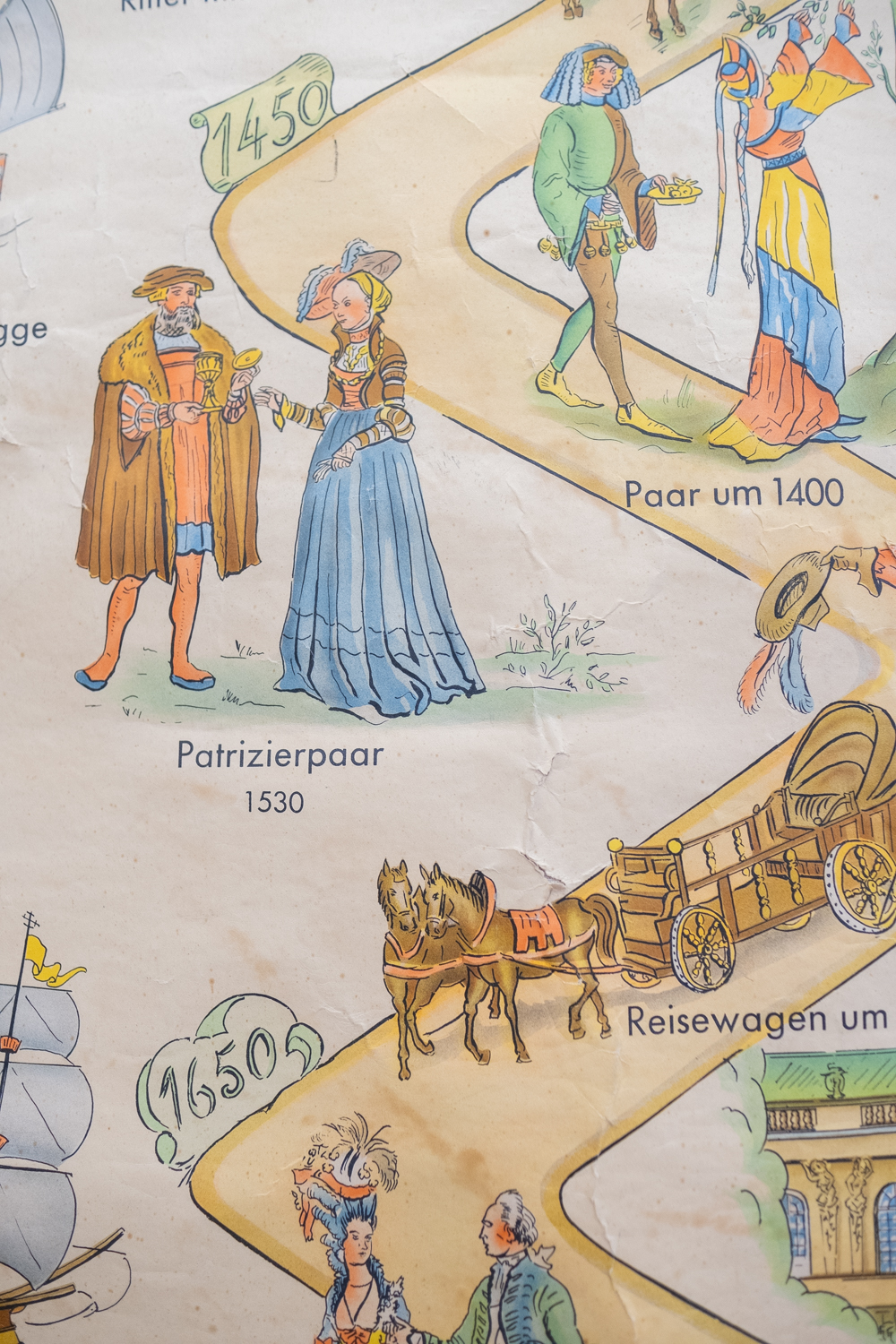 Velký školní plakát pojednávající o cestě historií. V současné době jsou tyto plakáty z učeben a kabinetů vyhledávanou bytovou dekorací.
