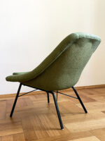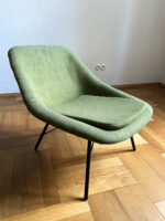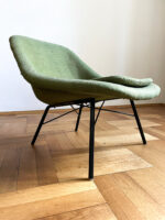 Skořepinové křeslo značky Ton z bruselské éry. Křesla mají subtilní kovovou základnu a s novým čalounením v jakékoliv barvě dostanou modenrí minimalistický ráz.