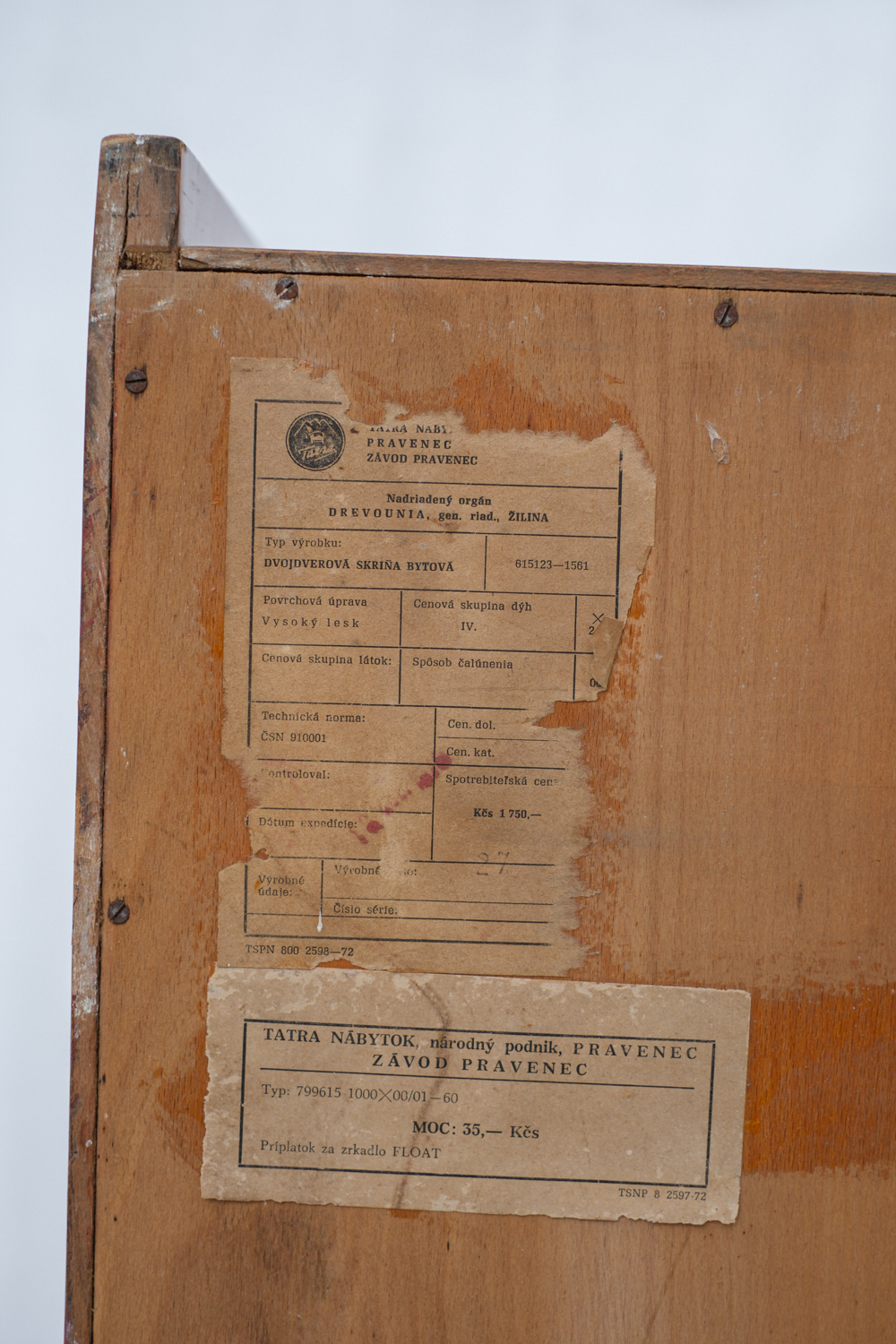 Šatní skříň navržená významným československým designérem Františkem Jirákem v 60. letech minulého století pro podnik Tatra nábytok. Jirák patřil k předním představitelům nábytkového modernismu, jehož tvorba vyniká důrazem na funkčnost, proporce a estetickou čistotu