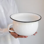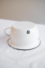 Tento typ smaltovaného nočníku používala ještě moje máma. Na prdelce trochu studí, ale jako dárek pro nastávající maminku, která má ráda retro to vadit nebude. Použít se dá i jako obal na květináč.