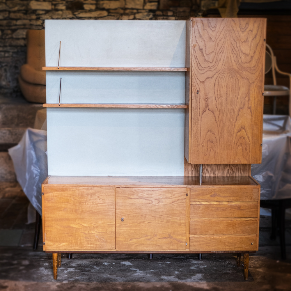 Variabilní stěna z 60. let minulého století vhodná i do malého bytu. Složíte do ni vše od hrnečků, knih až po prádlo. Umožňuje mít věci vystavené i schované.