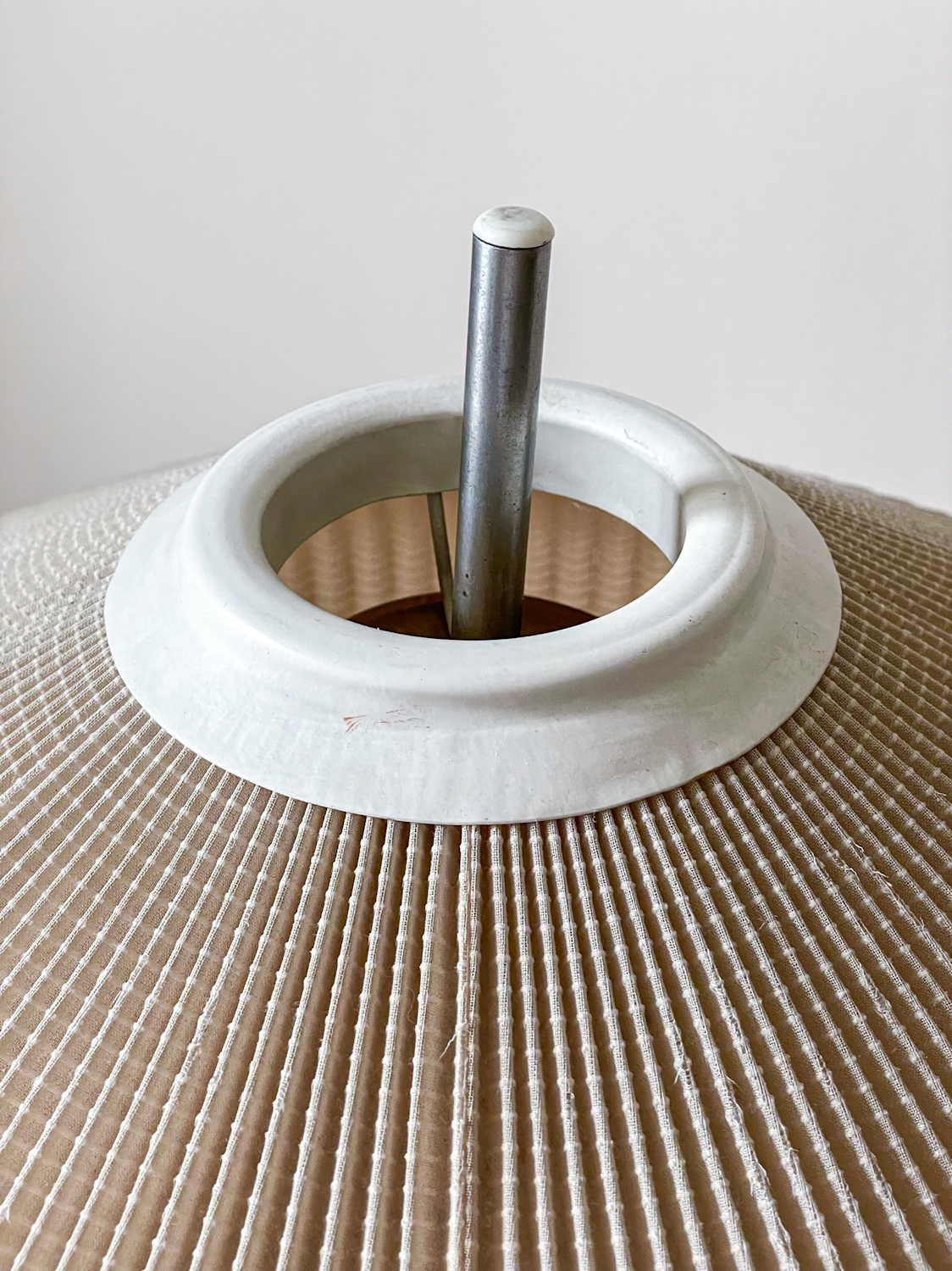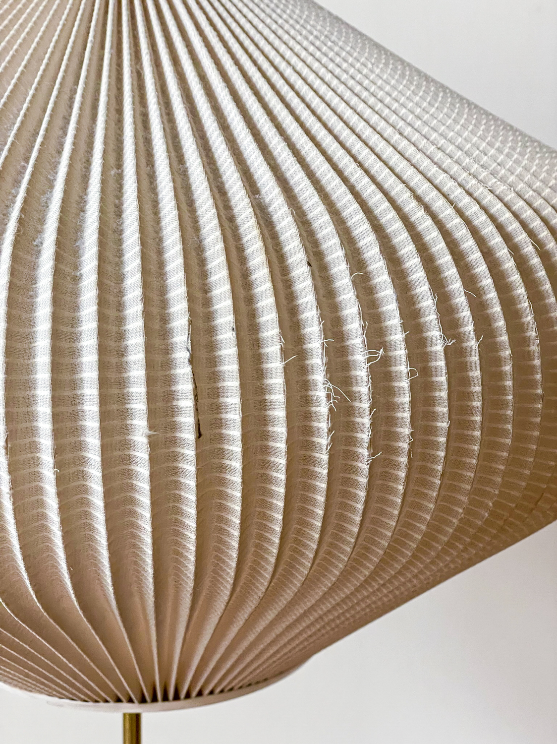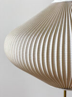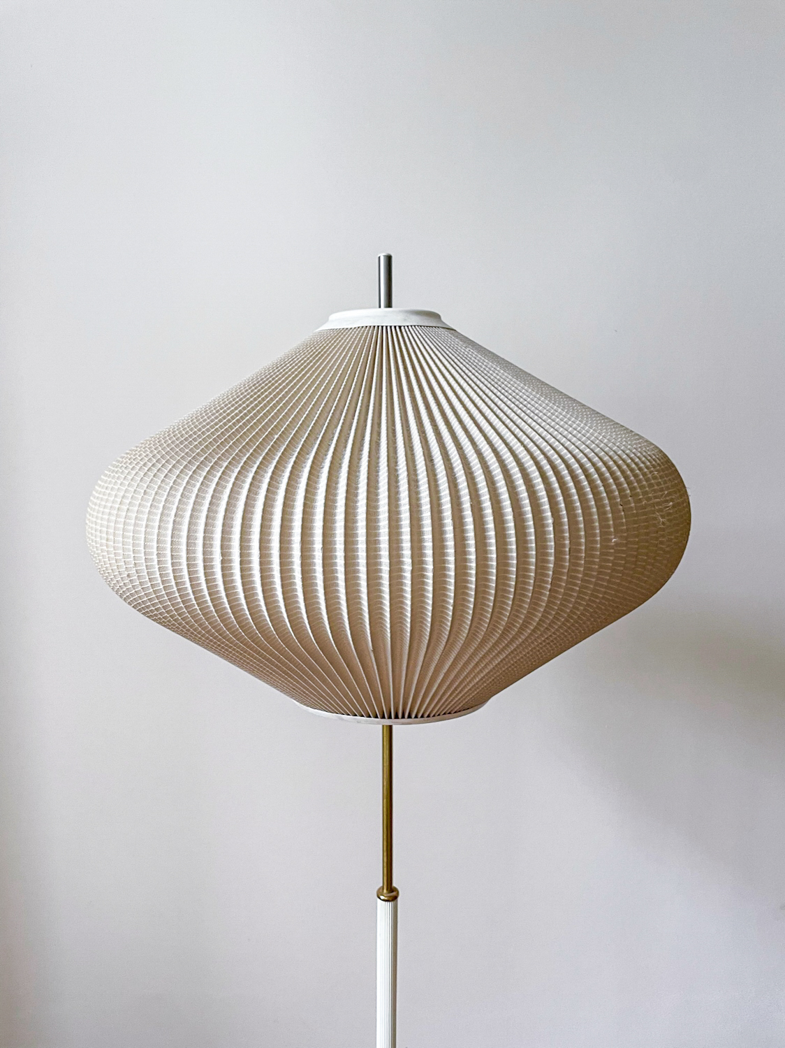 Krásná elegantní stojací lampa z poloviny minulého století. Stínidlo je z plisované látky, noha kov v kombinaci s bílým plastem.
