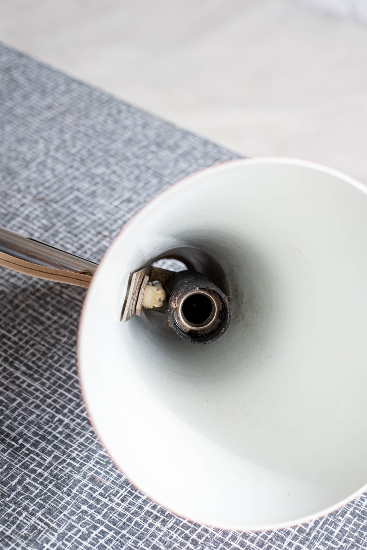 Stolní lampička ze 70. let minulého století vyrobena firmou Lidokov dle návrhu Josefa Hůrky, který je rovněž autorem ikonického lustru „ufo“. Lakovaná podnož a stínidlo je propojeno chromovanou tyčí. Jedná se o velmi progresivní a praktický design. 250 V, 25 W