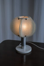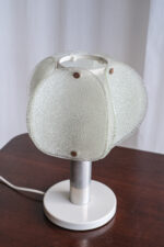 Stolní lampička ze 70. let 20. století původem z Německa. Stínidlo je tvořeno 5 skleněnými deskami připomínající chipsy.