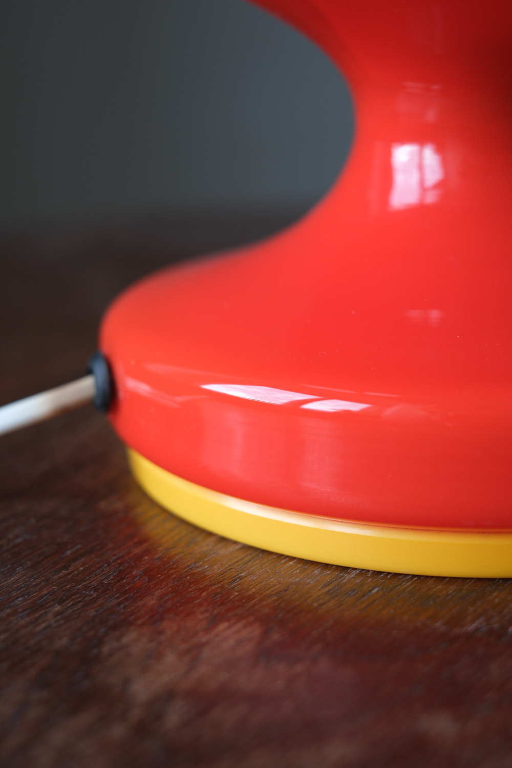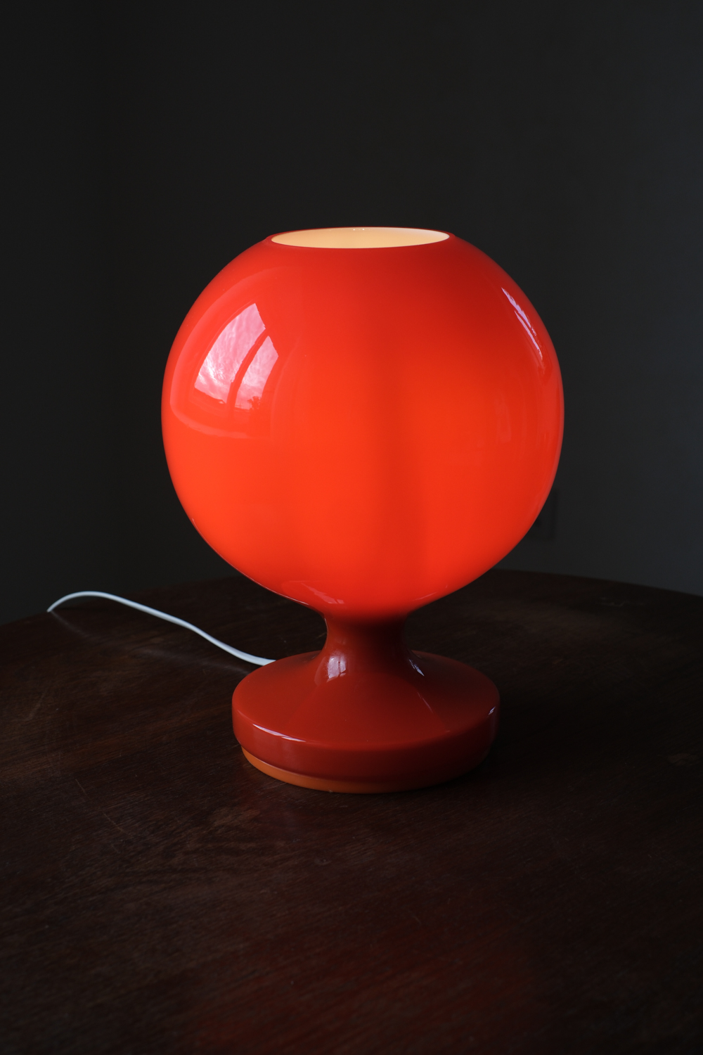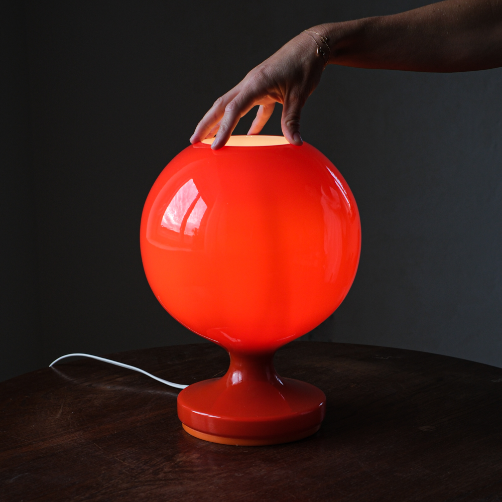 Skleněná stolní lampa od nyní populárního Štěpána Tabery, kterou navrhl v 70. letech pro Osvětlovací sklo, středisko podniku v Kostanech u Teplic. Jde o ikonický, notoricky známý model z opálového skla, které je v jednom kuse společně s podstavcem, zakončeným oranžovým plastovým proužkem. Při rozsvícení se však rozzáří pouze jeho horní část.