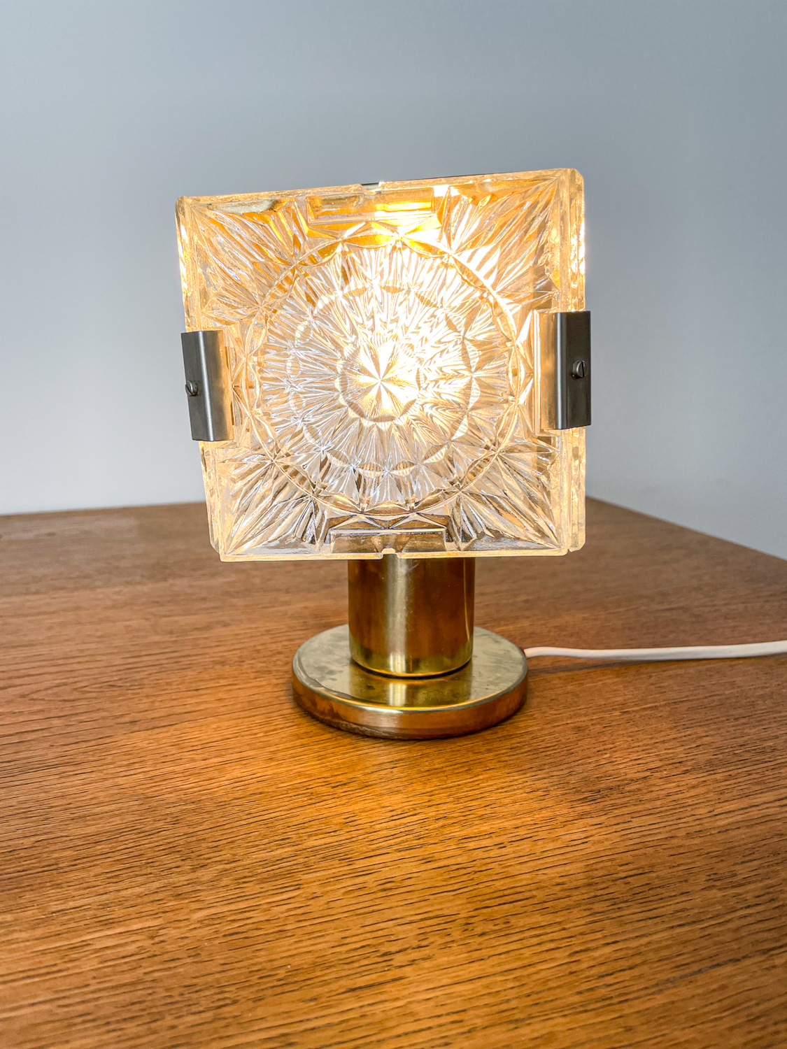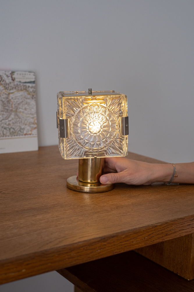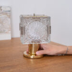 Lampička byla zhotovena ve sklárně v Kamenickém Šenově a to ve 2. polovině 20.století, přesněji v letech 1960 – 1969. Je vyrobena v kombinaci kovu a skla, která jsou bohatě zdobena geometrickým motivem, jež je vyveden plasticky.