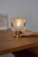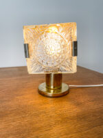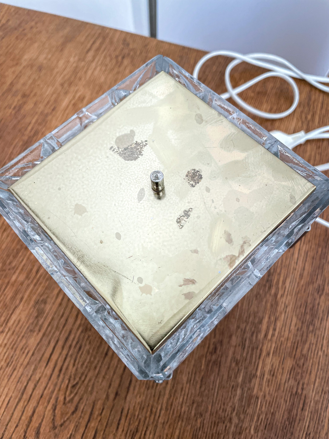 Stav: elektroinstalace původní, funkční, zlatý podstavec mírná patina. Zlatá deska nahoře mírné fleky