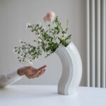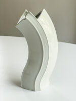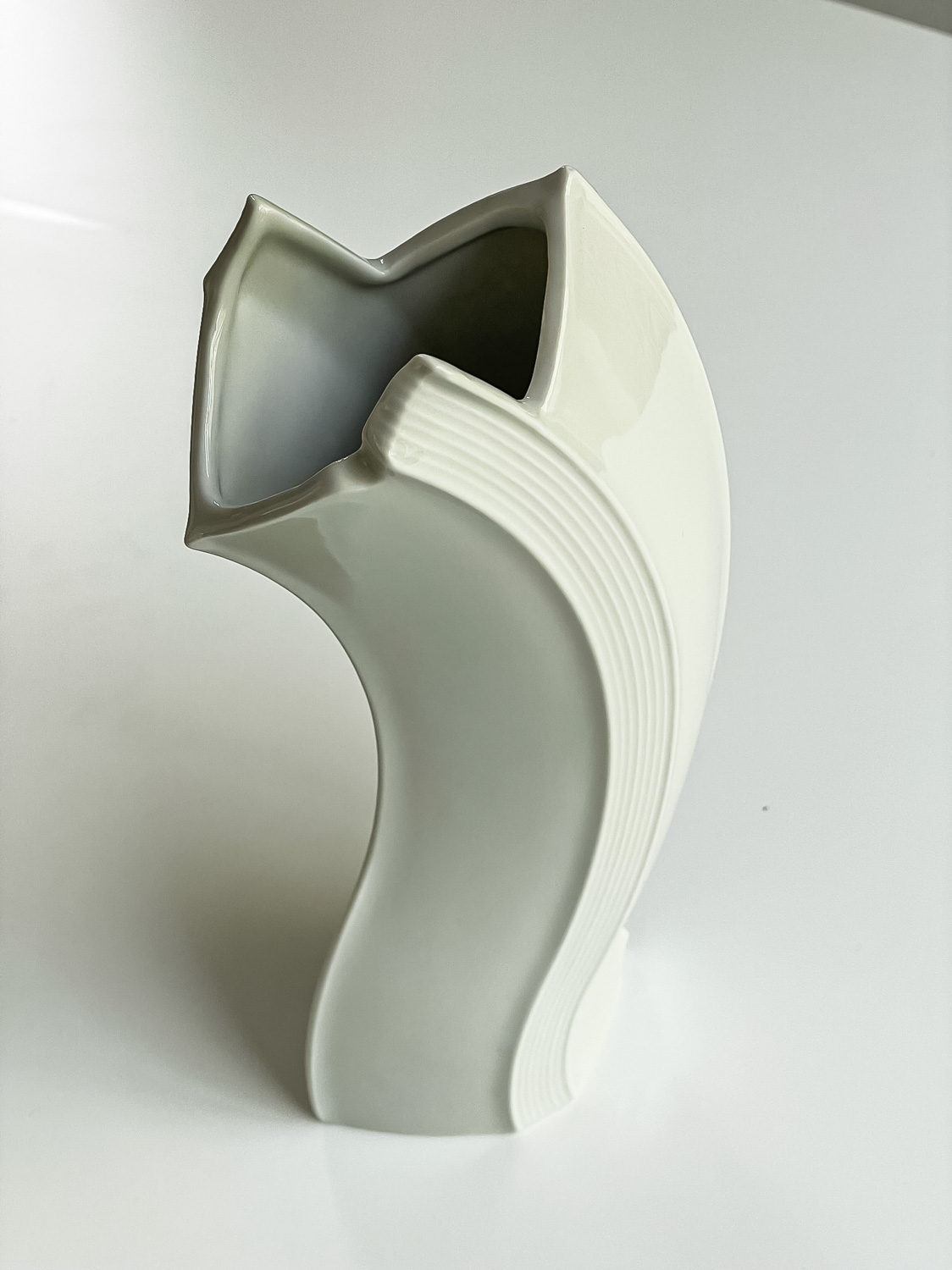 Zajímavě tvarovaná váza od prof. ak. soch. Václav Šeráka. Jeho produkty mají dynamický tvar a velkorysé proporce, což je vidět i na této váze.