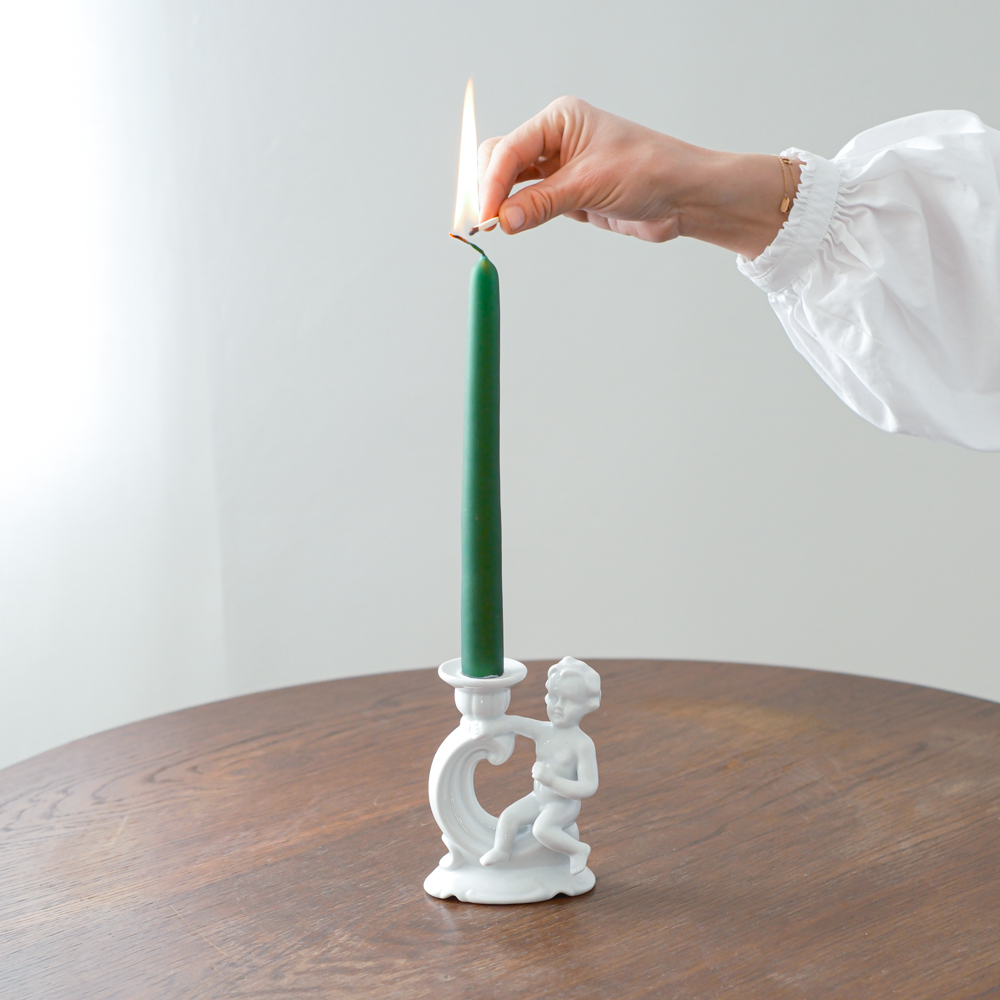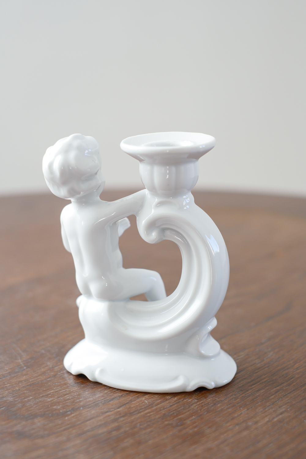 Porcelánový svícen v barokním stylu na konickou svíčku. Svícny budou krásné na jídelním stolu v páru, ale i samostatně na komodě vytvoří vánoční atmosféru. Jeden je orientovaný napravo a druhý nalevo, prosím uvést do poznámky o jaký máte zájem.