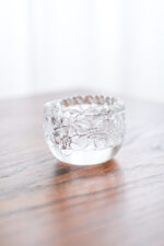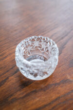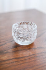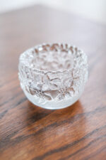 Skleněný svícen na čajovou svíčku od německé porcelánky Thomas spadající do rodiny Rosenthal. Svícen evokuje květy zamrzlé v ledu.