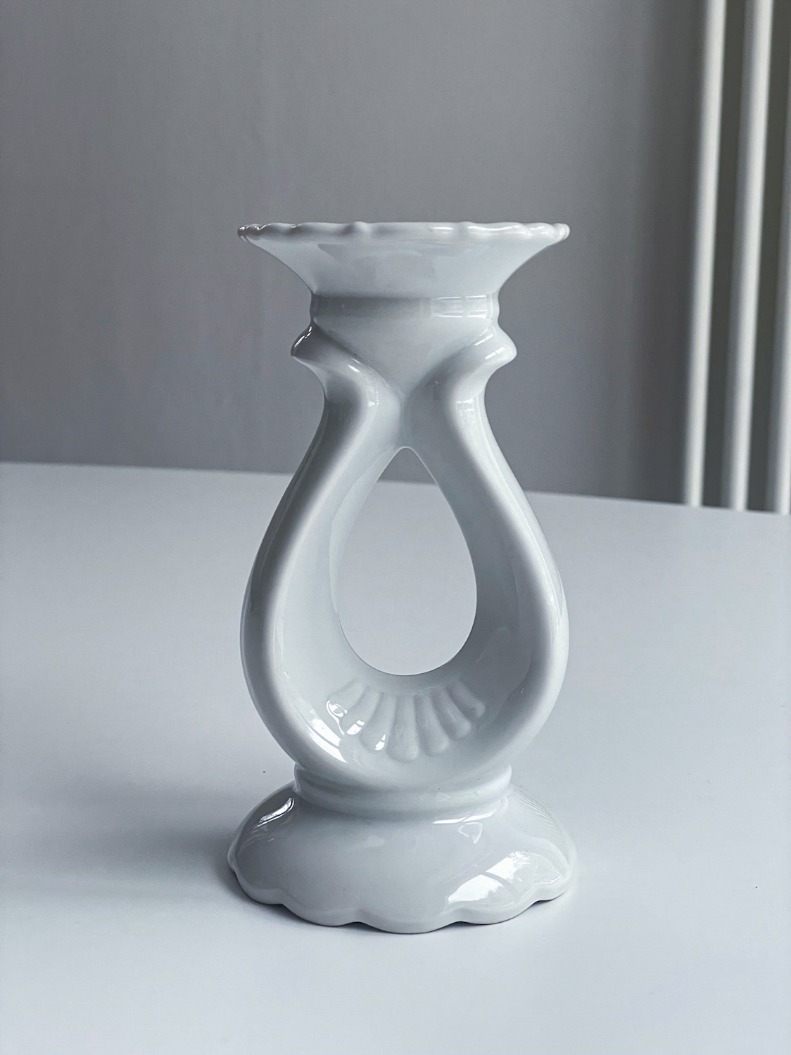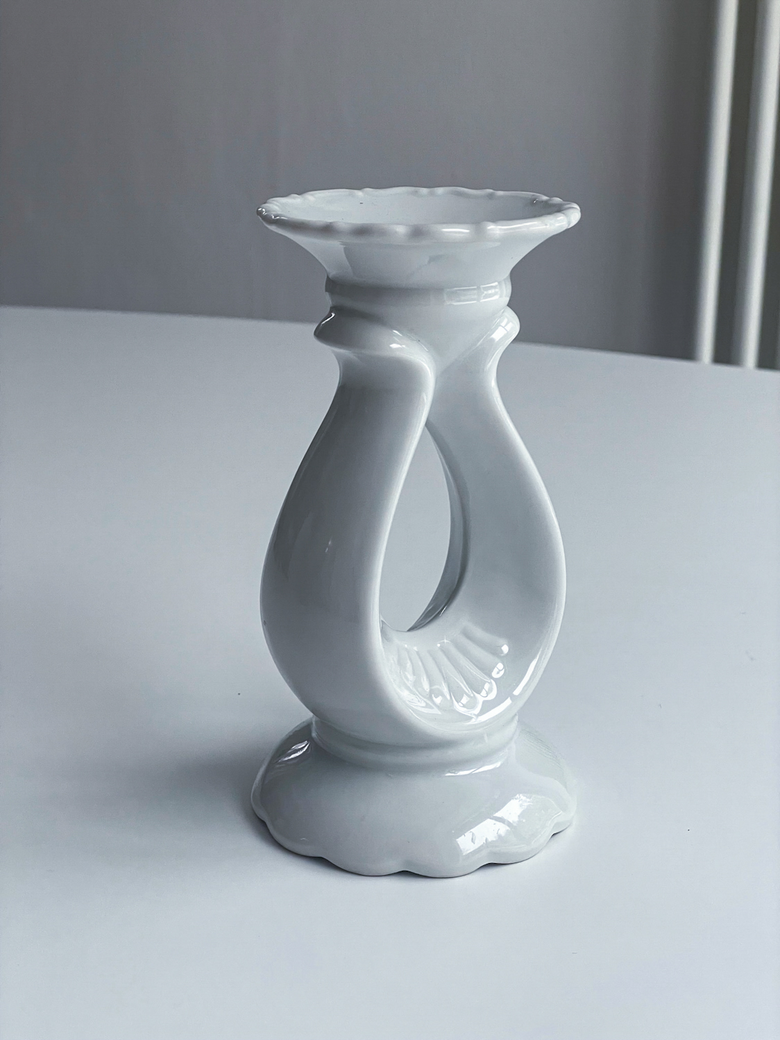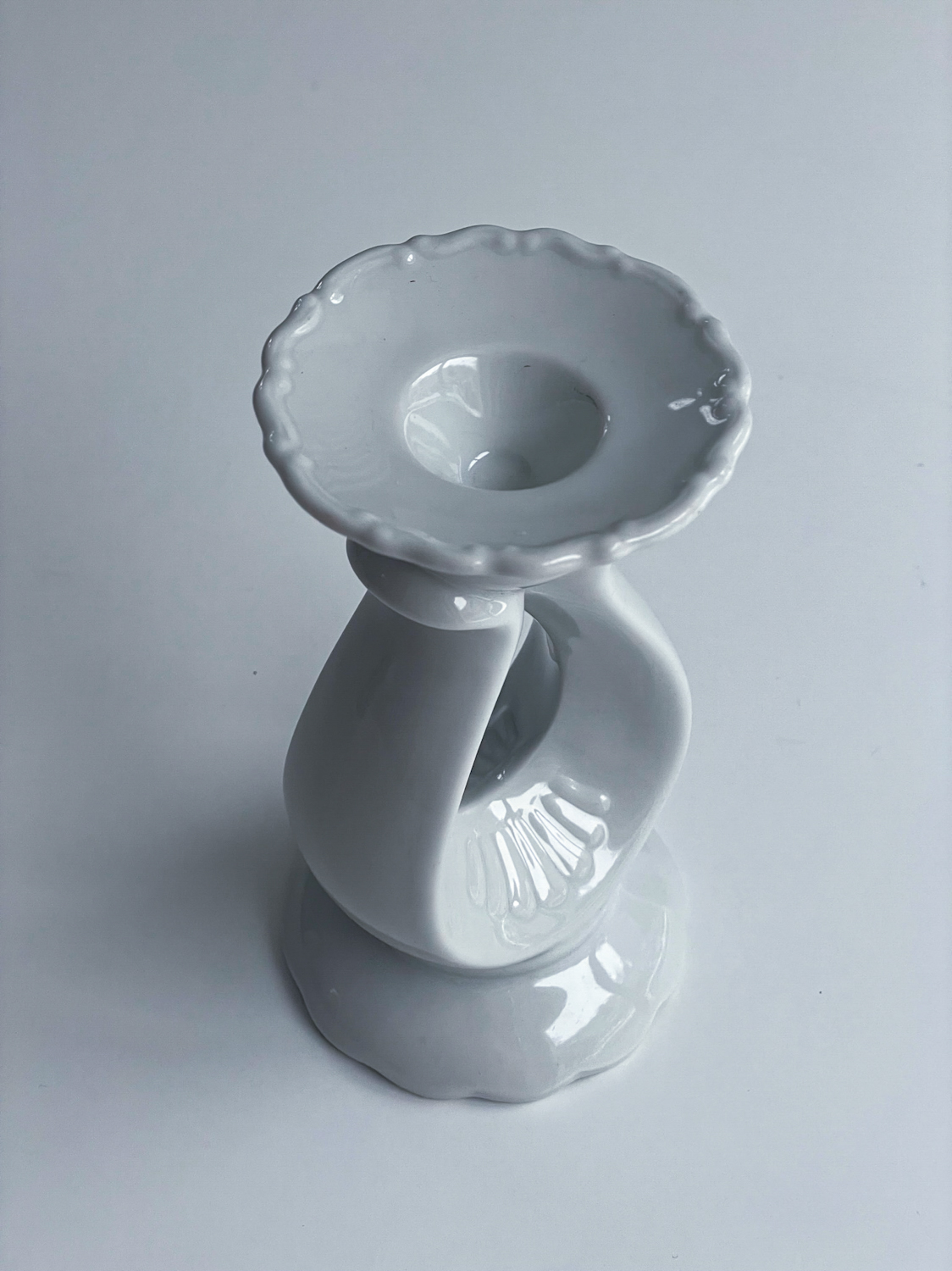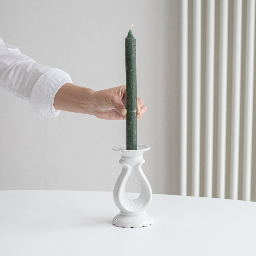 Zajímavě tvarovaný svícen od české porcelánky Thun (neznačený) na jednu vyšší svíčku.