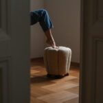 Taburet „tulipán“ od Jindřicha Halabaly – ikonický tvar, který poznáte na první pohled. Měkké, svisle členěné boky se sbíhají do středového knoflíku a vytvářejí siluetu připomínající rozevírající se květ. Je to jeden z Halabalových nejpoetičtějších návrhů, který i po desetiletích působí přátelsky a hravě.