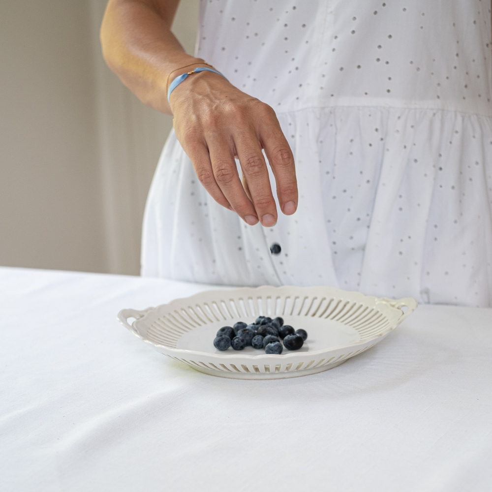 Porcelánový tácek s prolamovaným lemem udělá z každého servírování elegantní záležitost.