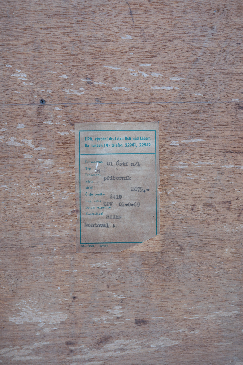 Úložná skříňka / knihovna z produkce družstva LÍPA, Ústí nad Labem, datovaná do roku 1969. Typický příklad československého nábytku konce 60. let, kde se spojuje praktičnost s čistým, funkčním výrazem.