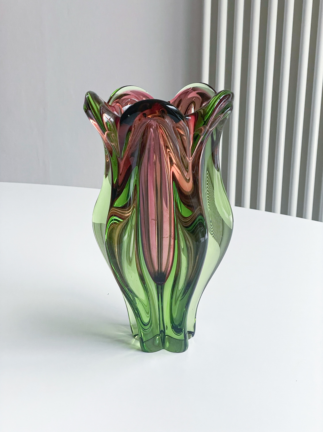 Váza z hutního skla od designéra Josefa Hospodky pro sklárny Chřibská pochází z 2. poloviny 20. století a momentálně je žádaným artiklem.