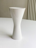 Minimalistická porcelánová váza ve tvaru přesípacích hodin je velmi praktická na vázané kytice.
