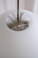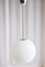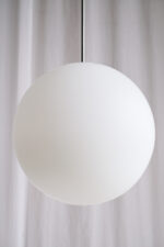 Velký skleněný lustr ve tvaru koule je minimalistický a proto se hodí do jakéhokoliv interiéru.
