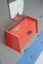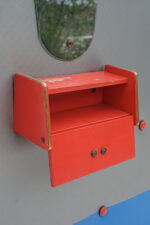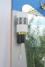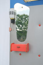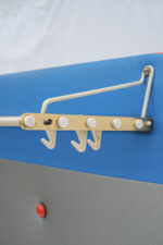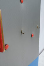 Retro věšáková stěna potažena koženkou, aby ochránila kabáty a bundy proti umazání od zdi. Zrcadlo (ve tvaru typickém pro bruselskou éru) na poslední kontrolu před odchodem z domu a malá dřevěná skříňka původně na kartáč na šaty se dá využít třeba na klíče. Navíc má stěna i malou nástěnnou lampičku.