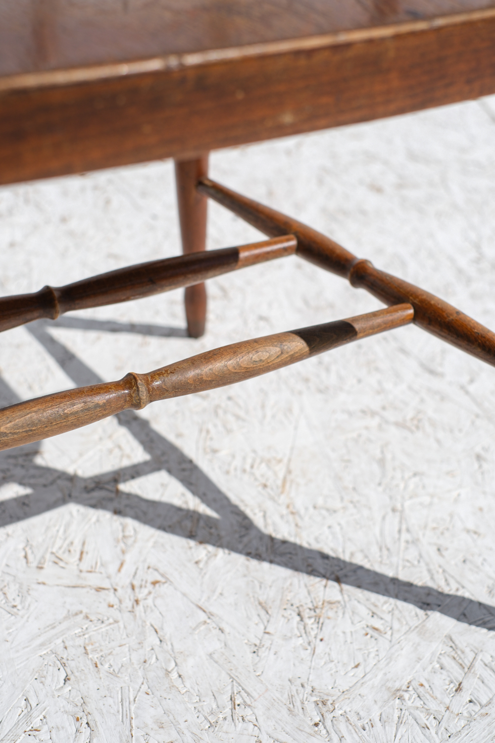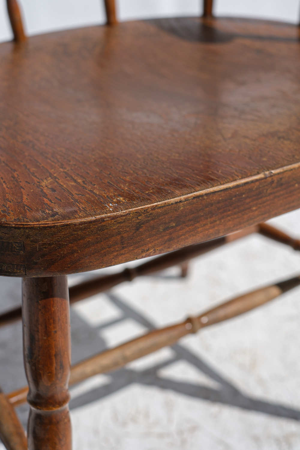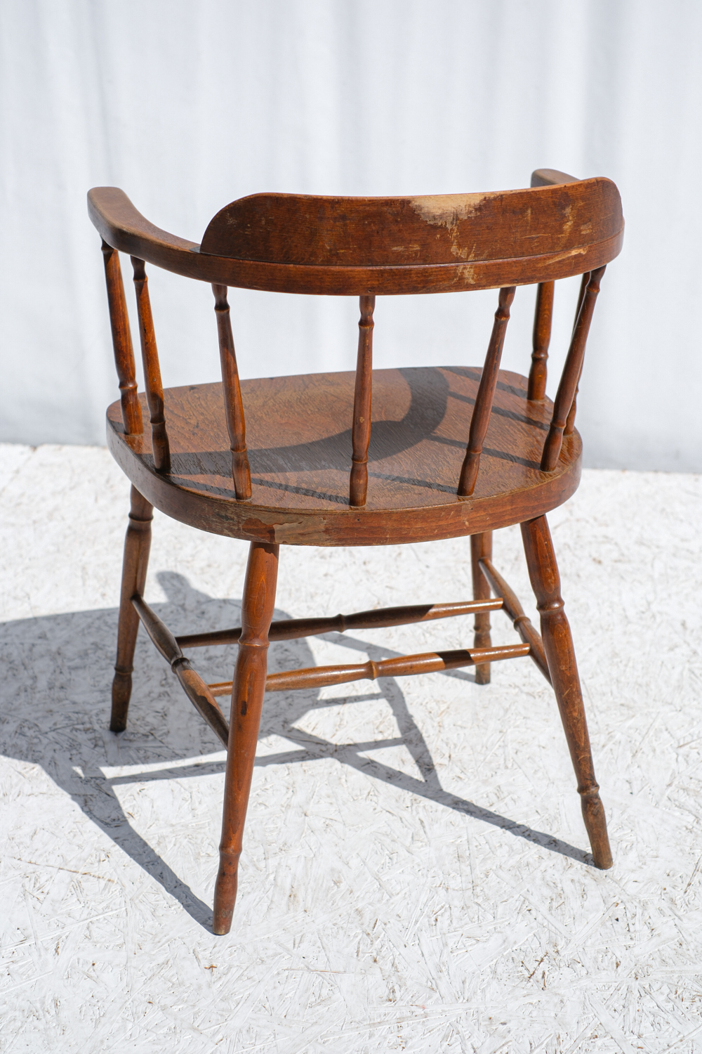 Tradiční dřevěná židle s područkami vyrobena z masivního dubu, s krásně patinovaným povrchem a řemeslným detailem. Tvar i proporce připomínají model Windsor z katalogů Thonet z přelomu 19. a 20. století.
