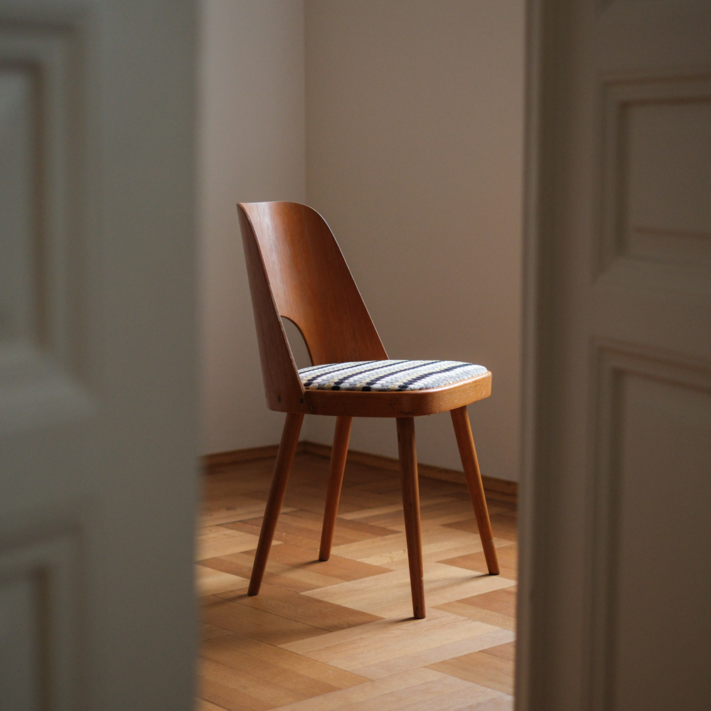 Výsledkem je krásný příklad středoevropského modernismu – židle, která kombinuje jemnost tvaru, funkčnost a autorův nezaměnitelný cit pro proporce.