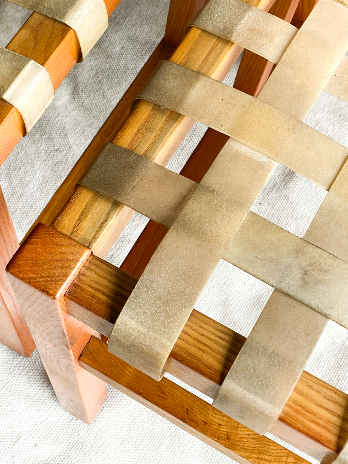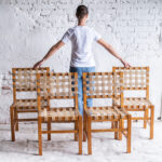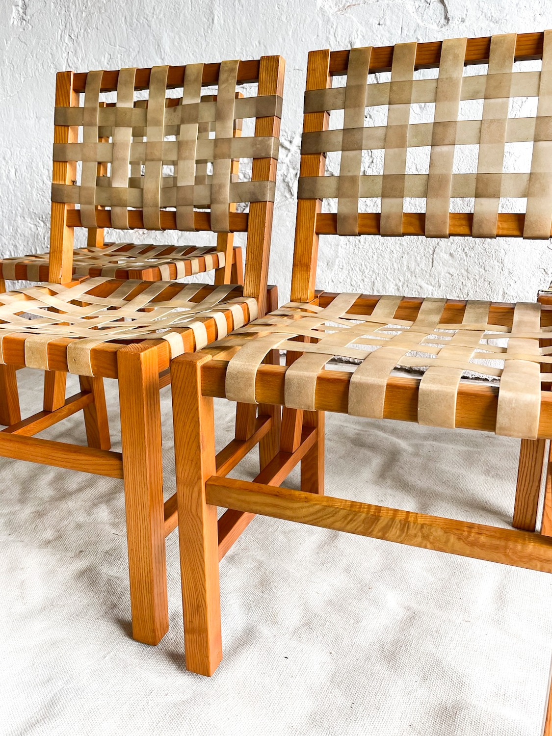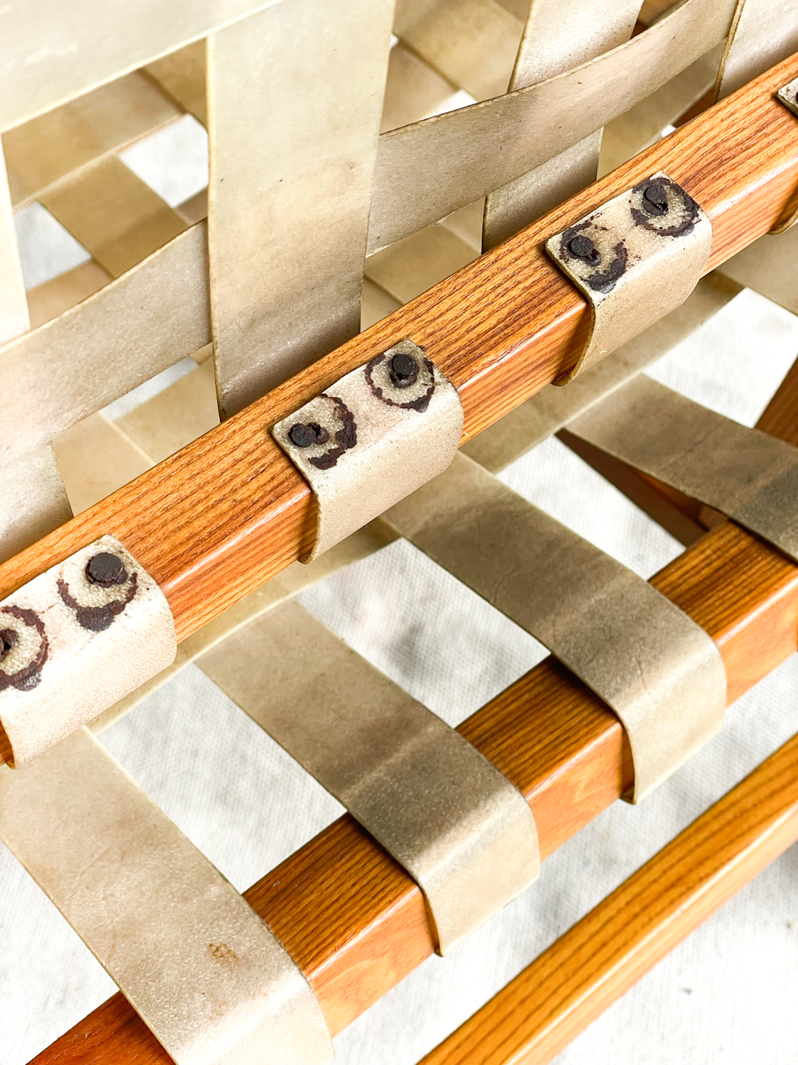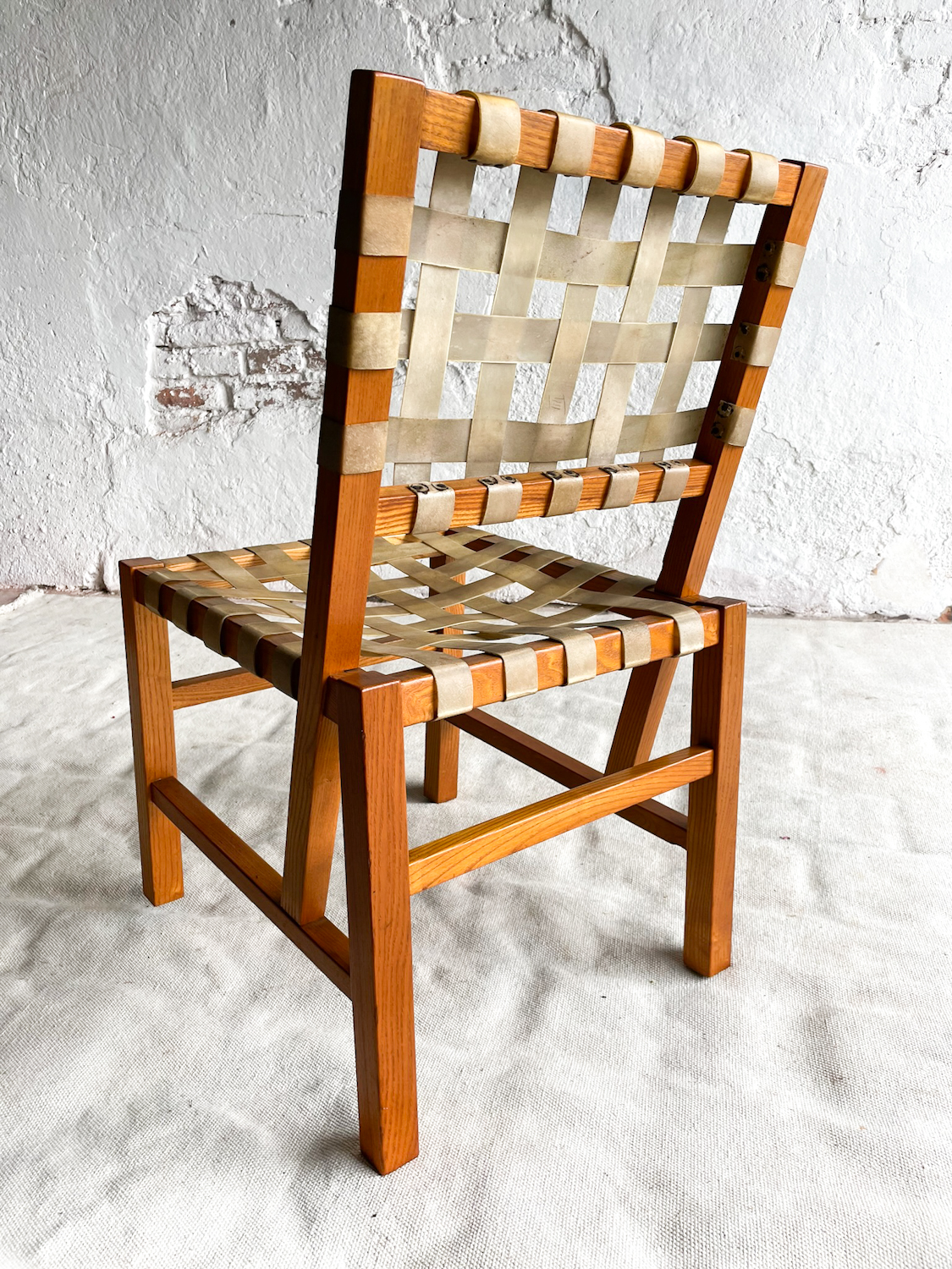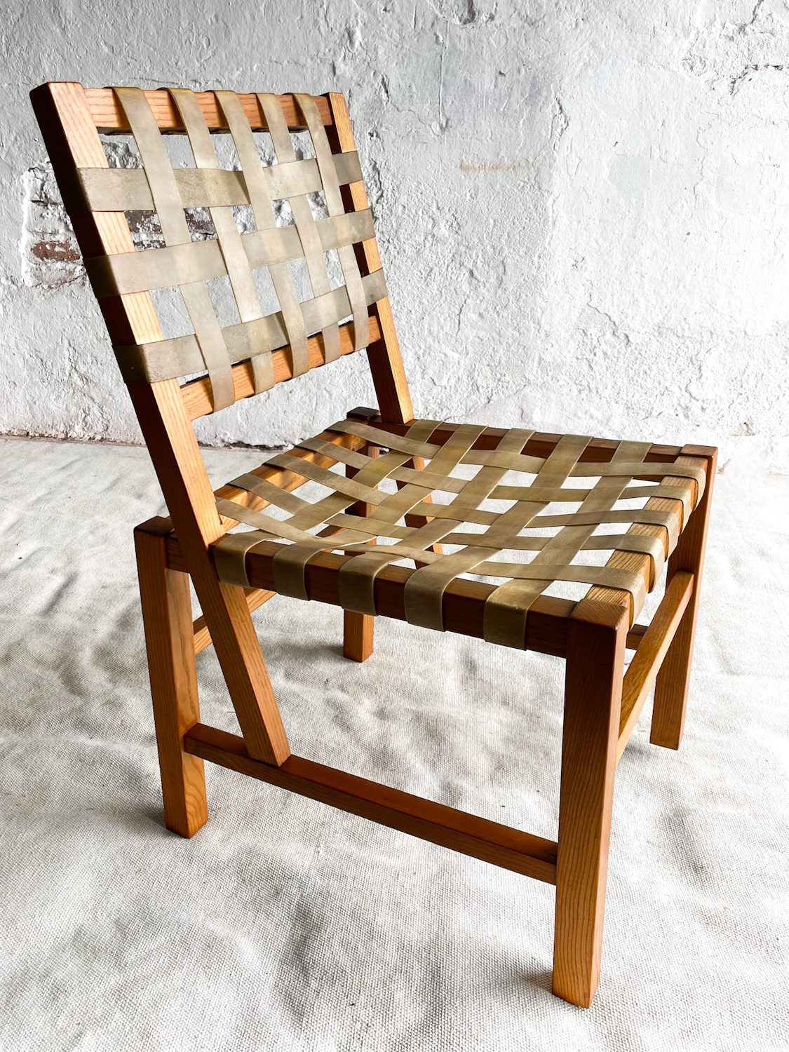 Žilde křesílkovitého typu vyrobena v 50. letech pravděpodobně na zakázku pro ředitelství plzeňského pivovaru. Popruhy jsou kožené. Podobný model židle jsme našly od Dirka van Sliedrechta z roku 1954.