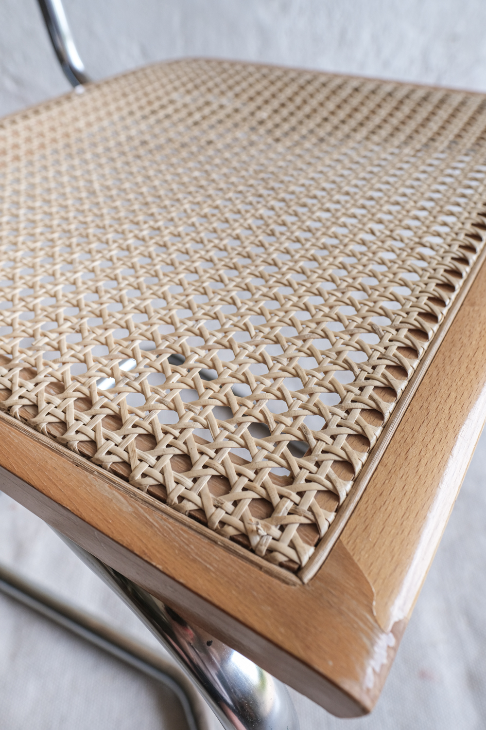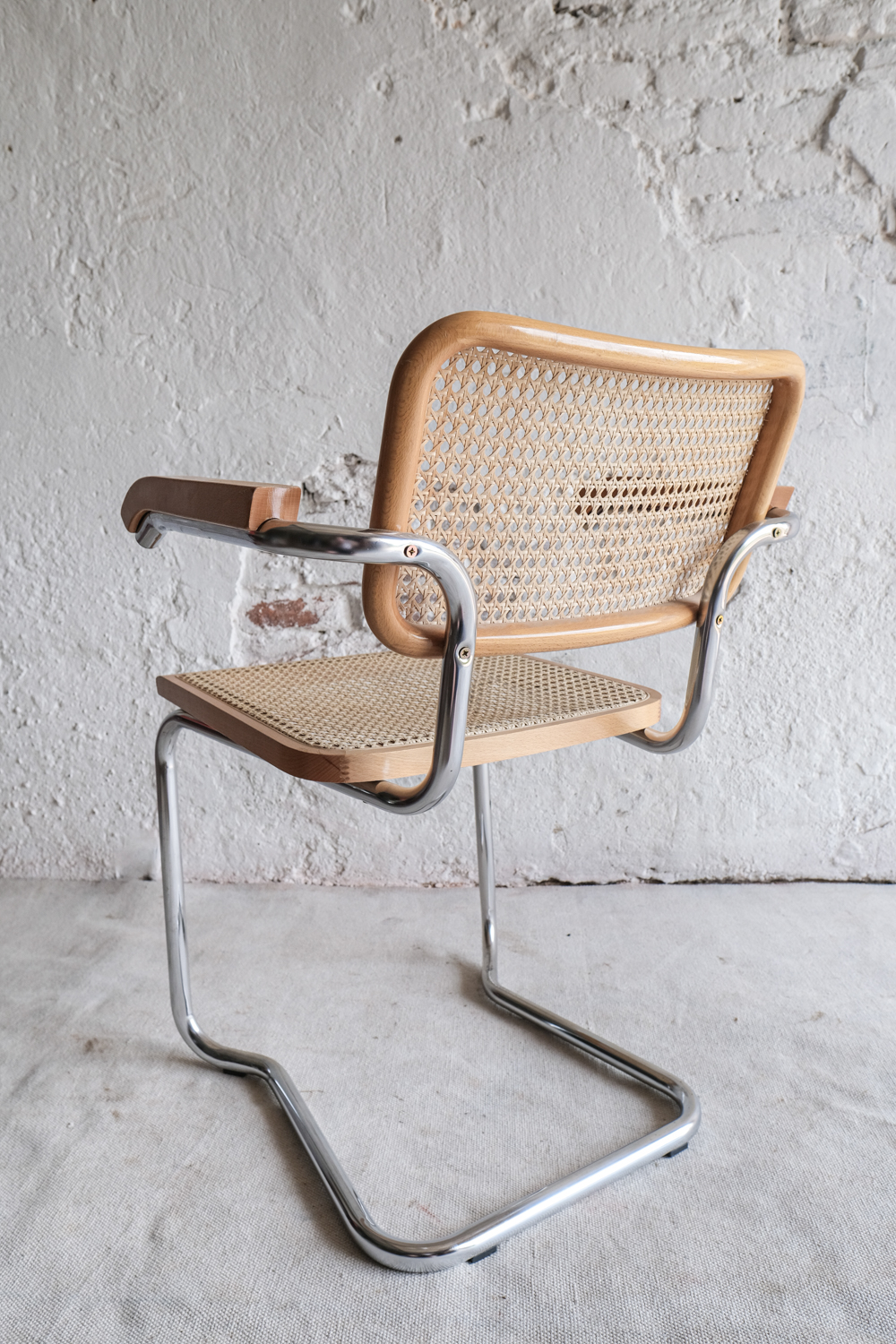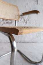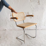 Oblíbená židle s výpletem inspirována známým modelem Cesca, kterou navrh Marcel Breuer, je pro svůj minimalistický a nadčasový design již po desetiletí ikonou interiérového designu. Židle Cesca vyrábí firma Gavina, která jako jediná získala licenci od Breuera. I tato židle, kterou máme v nabídce, pochází z italské dílny. Kombinuje elegantní chromový rám s ratanovým sedákem a opěrákem a dřevěným lemováním s opěrkami.