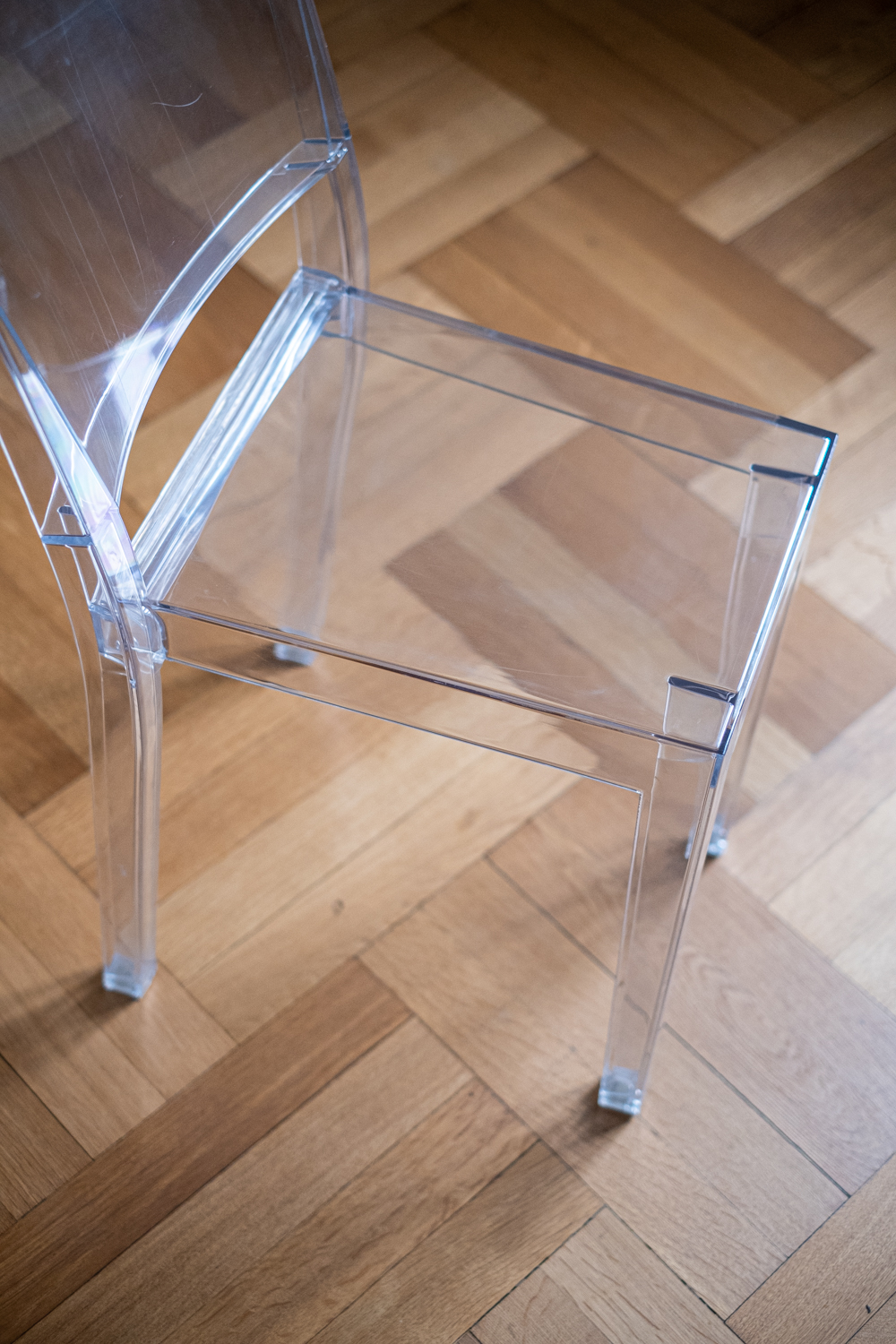 Moderní italská židle z polykarbonátu od známého designera Philippa Starcka se tváří svou půhledností, že je neviditelná.
