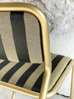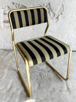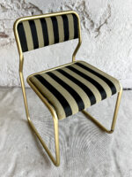 Židle, která se pod rukama Vojty Šandery proměnila z rezavého zpustošeného stavu v luxusní kousek s moderním nádechem. Využil jejího nadčasového stylu a pomocí zlaté barvy a nového čalounění ji vrátil do života.