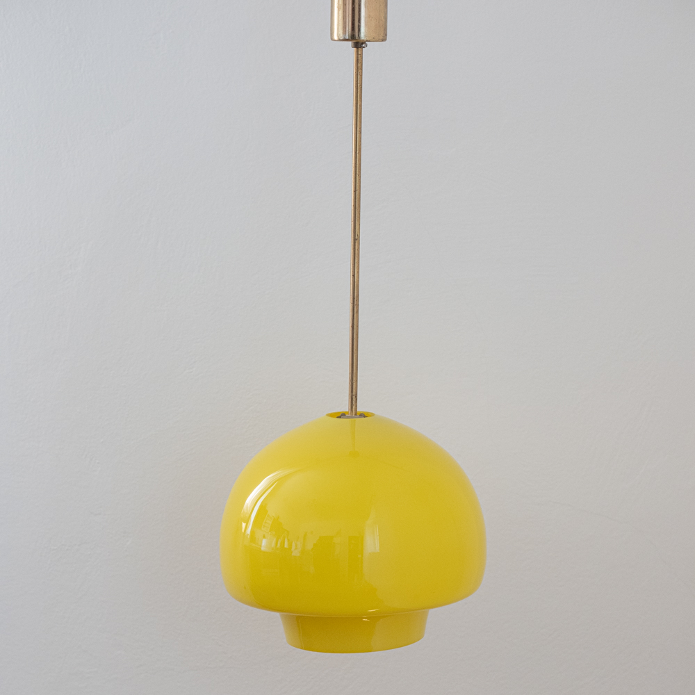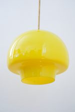 Jako kapka slunce zavěšená uprostřed místnosti. Tento lustr z opálového skla v intenzivním odstínu žluté rozjasní interiér i ve dnech, kdy venku vládne šedivá nálada. Hladká, baňatá silueta evokuje organické tvary 70. let a zároveň přináší hravou eleganci. Ideální jako solitér nad jídelní stůl, do kuchyně či do prostoru, který si žádá barevný akcent a optimismus.