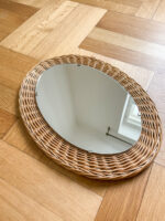 Malé oválné zrcadlo bez poškození z 90. let. Ve stejném stylu k dispozici i stoelček, stoličky, „lavička“ a věšák.