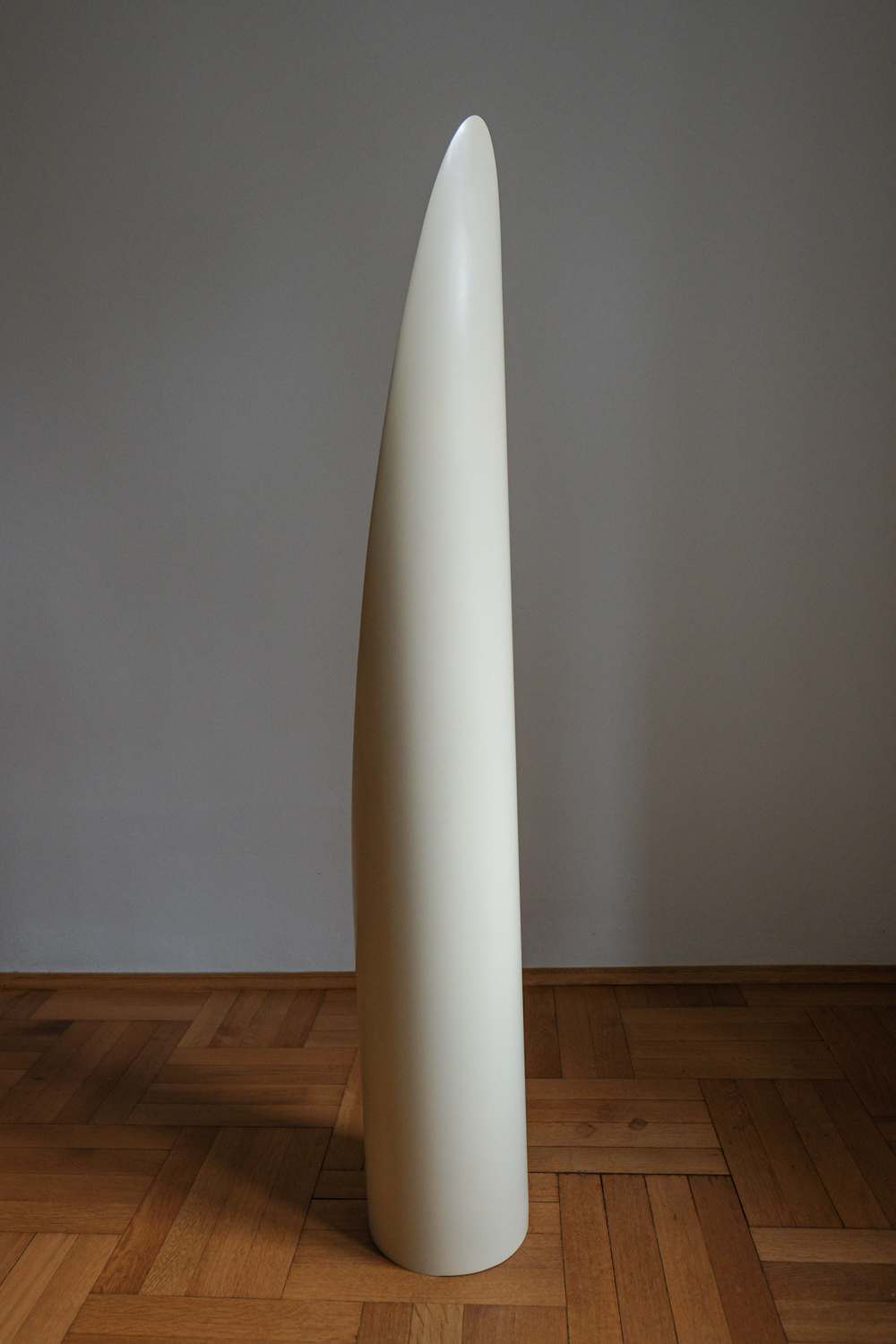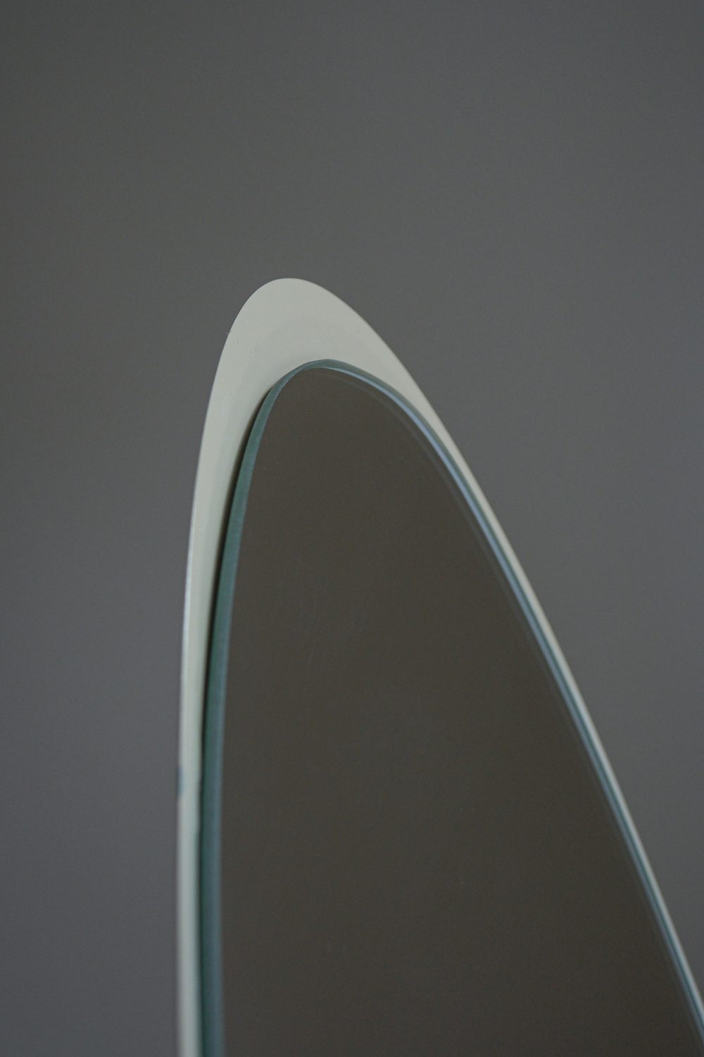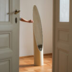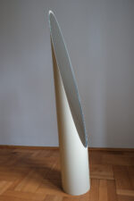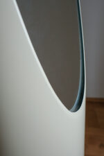 Stojací zrcadlo „Lipstick“ podle návrhu Rogera Lecala, francouzského designéra 60. let. Jeho štíhlá silueta připomínající vysunutou rtěnku patří k ikonám francouzského pop-modernismu. Dlouhá oválná zrcadlová plocha vložená do hladkého válcového těla vytváří dojem elegantního, téměř sochařského objektu.