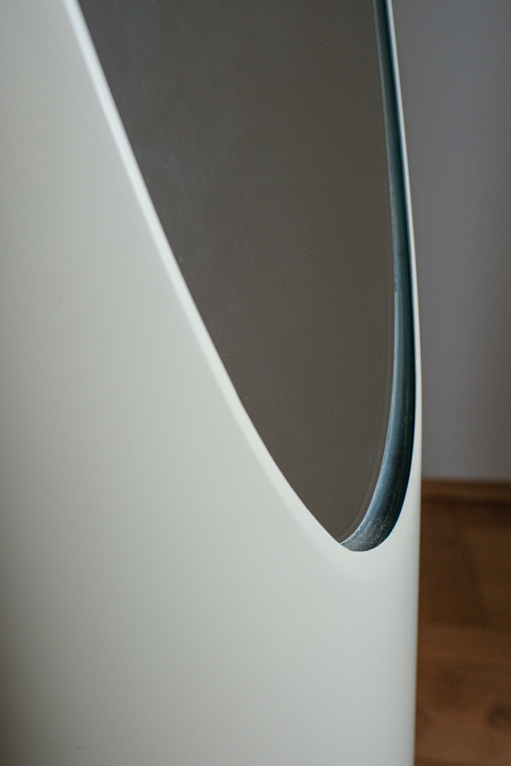 Zrcadlo působí lehce futuristicky, ale zároveň harmonicky a čistě. Ideální jako designový solitér do ložnice, šatny či předsíně, kde dodá prostoru eleganci, světlo a jemný šarm 60. let.